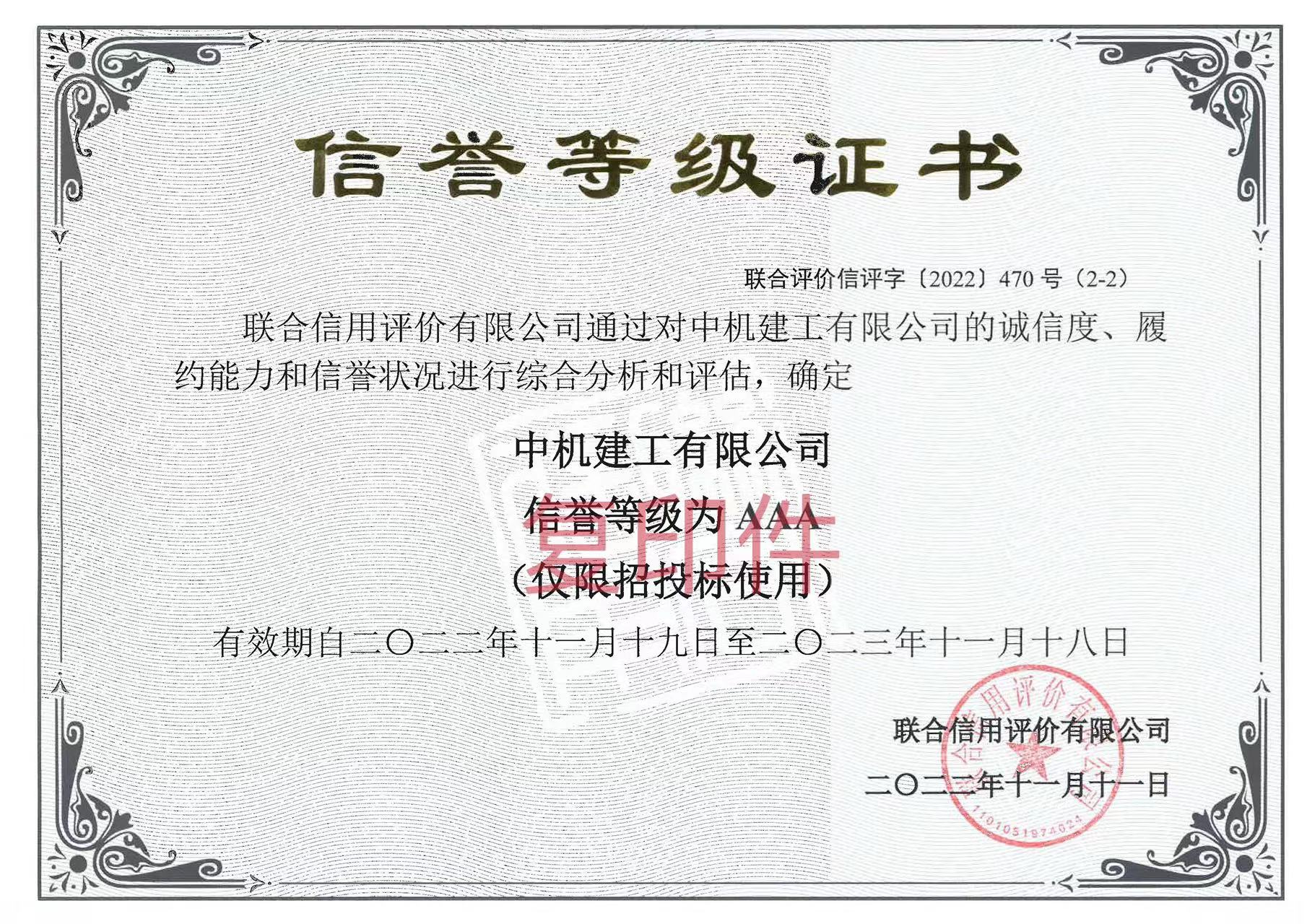 AAA信誉等级证书