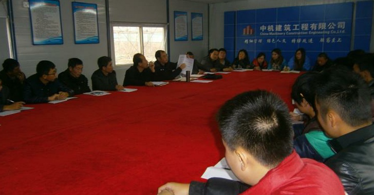 1129万州项目部根据公司《关于立即开展安全大检查的通知》要求,组织管理人员学习《安全生产管理制度》、《突发事件综合应急预案》、《安全技术操作规程》、《建筑施工现场安全隐患图册》等相关文件。项目部根据文件内容结合施工现场的桩基础、主体支模架、外脚手架、及吊篮等施工项目和施工用电等有针对性的进行了讨论,让参会的员工学习文件的同时也意识到了工作中存在的安全隐患,为安全生产月活动的开展奠定了良好的基础。