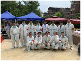 公司第四党小组主要负责金地艺境一期小区疫情防控工作,他们招募并组建了34人的志愿者团队,全身心投入到疫情防控工作中,不计较个人安危,深入一线,对所管辖社区进行实际在住人员统计及密切接触者信息排查;在社区连续三轮核酸检测工作中负责现场布置、检测物资保障、维护检测现场秩序,其中第一次核酸检测补检45人,第二轮核酸检测标本采集1526份,第三轮核酸检测标本采集1496人;为保障小区居民日常生活,公司第四党小组带领本组志愿者承担起生活物资的分拣、配送与保障工作,特别是对孤寡、卧床老人开展无微不至的针对性服务,为全体居民配送生活物资20多天;同时还要坚持每天安排政府供应防疫物资发放及封闭期间居民体温统计等工作。