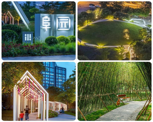 整个改造工程从景观、生态、文化三个方面入手,着力打造开放宜人、市民友好的高品质街心公园,助力双碳理念,以生态公园为主题,尽可能多利用环保材料和生态举措进行铺装及种植,同时选取“竹”、“藤”主题元素,明确文化及形象地标性,并进一步对公园内部设施、标识标牌、城市家具等进行更新。